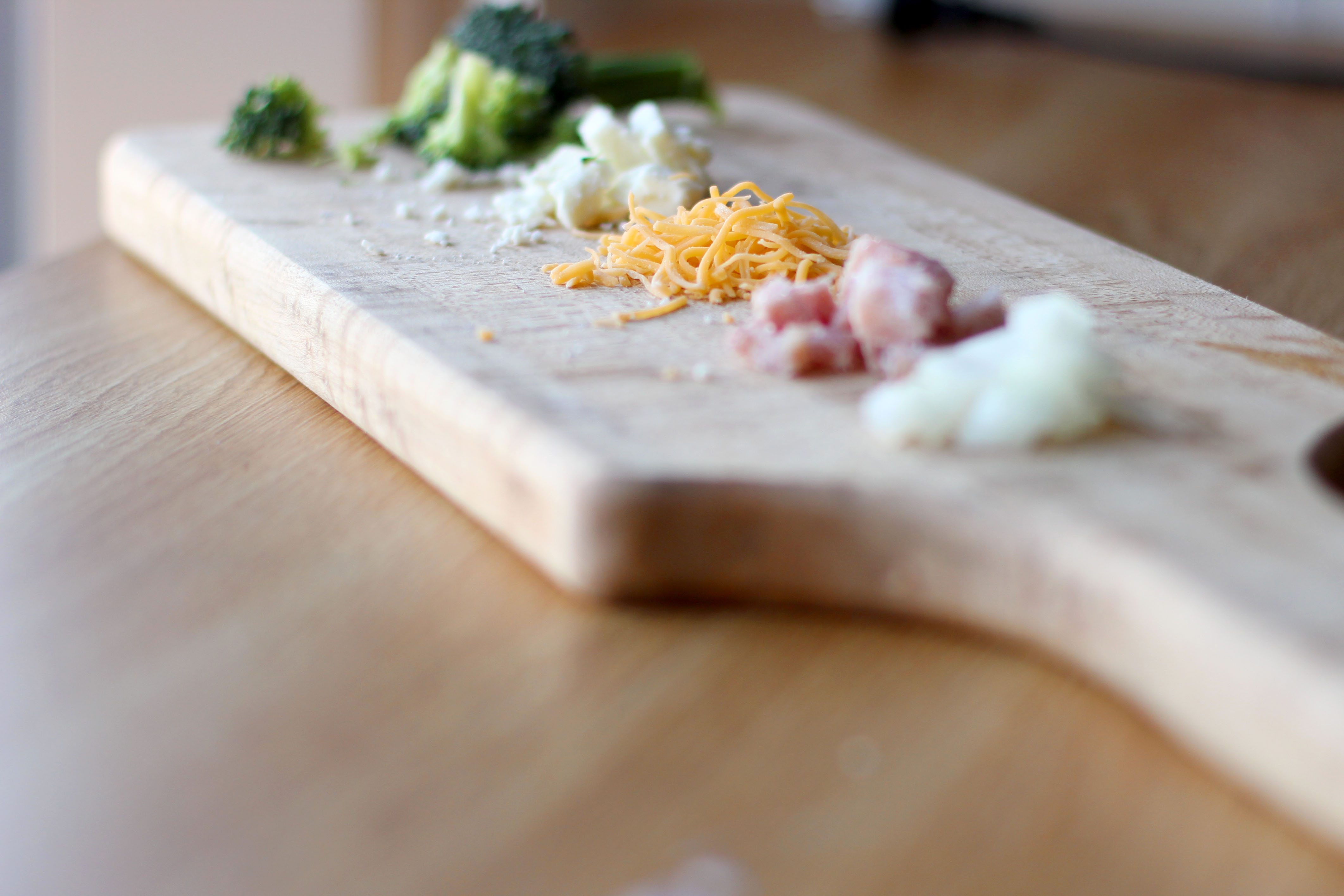 A basting brush isn’t something most college students (even ones who really enjoy cooking) tend to keep lying around, so I improvised with a piece of broccoli which was used to grease the sandwich maker after I poured melted butter into the maker.